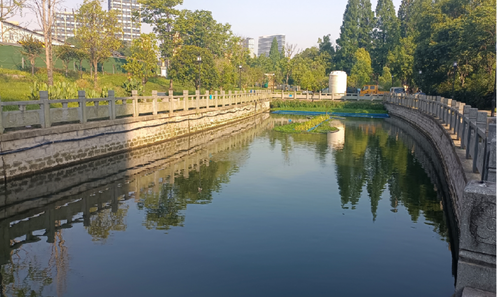 清湖控股經(jīng)過1個(gè)月的河道施工,鋪設(shè)了各種設(shè)施設(shè)備,從原位清淤做起,通過公司研發(fā)的“入河預(yù)處理系統(tǒng)”、“細(xì)微顆粒收集裝置”將河床黑臭淤積進(jìn)行原位清理,將水質(zhì)提升至lll類,并可做到長(zhǎng)效保持。